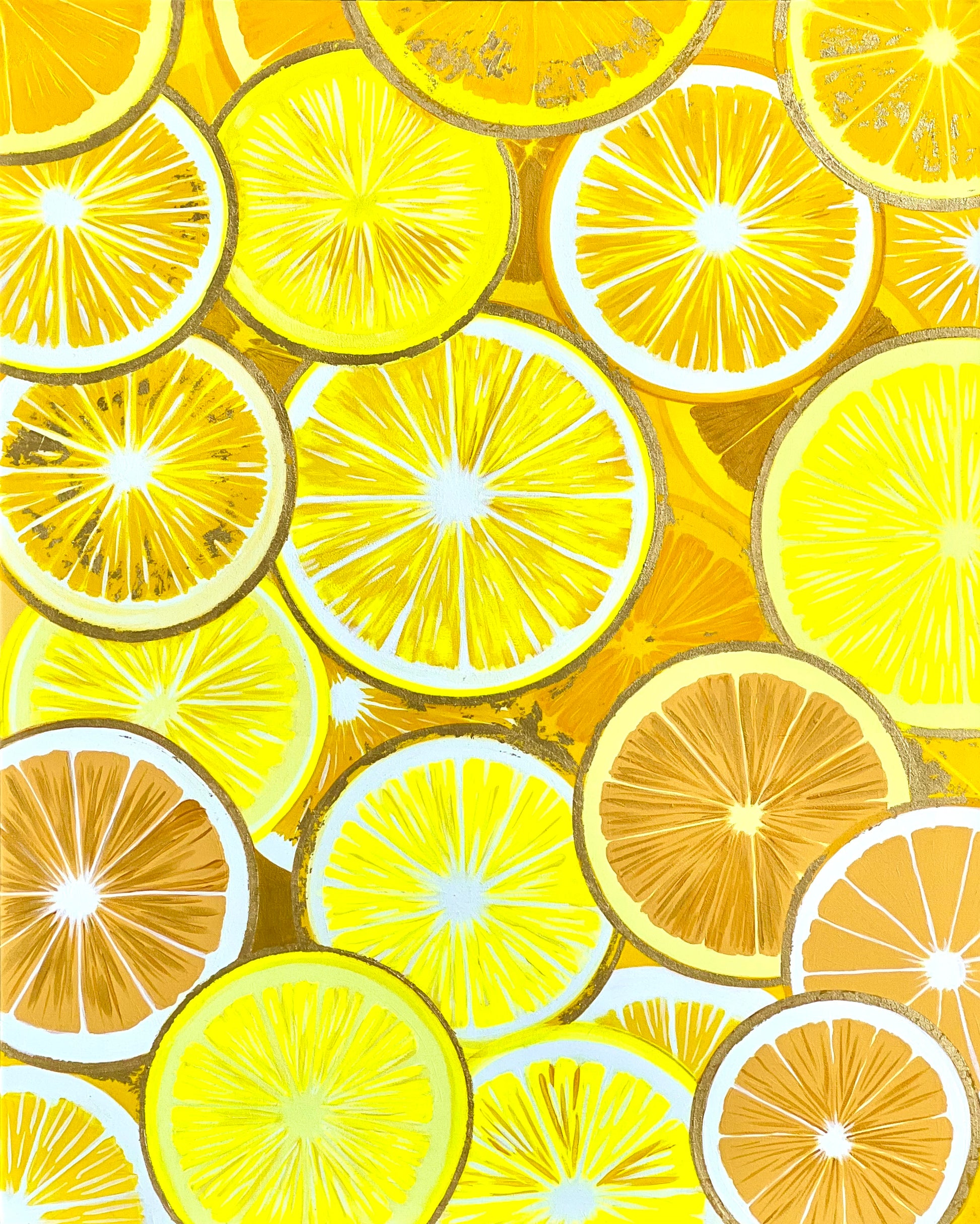 Infuse your space with a refreshing burst of energy and color with “Citrus Botanical.” This 80x100cm mixed-media masterpiece is a unique combination of oil, acrylic, and gold leaf, creating a vibrant and eye-catching design inspired by the natural beauty of citrus fruits. The shimmering gold accents add a touch of luxury, while the bold yellows and oranges evoke warmth, positivity, and vitality.