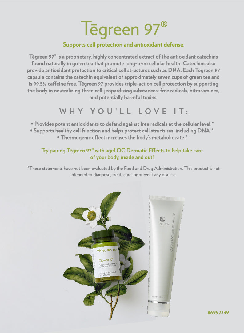 Tegreen 97® is a premium green tea extract supplement, scientifically formulated to protect your cells, boost your metabolism, and deliver powerful antioxidant benefits. Each capsule contains the antioxidant power of seven cups of green tea, offering unparalleled bioavailability with minimal caffeine.